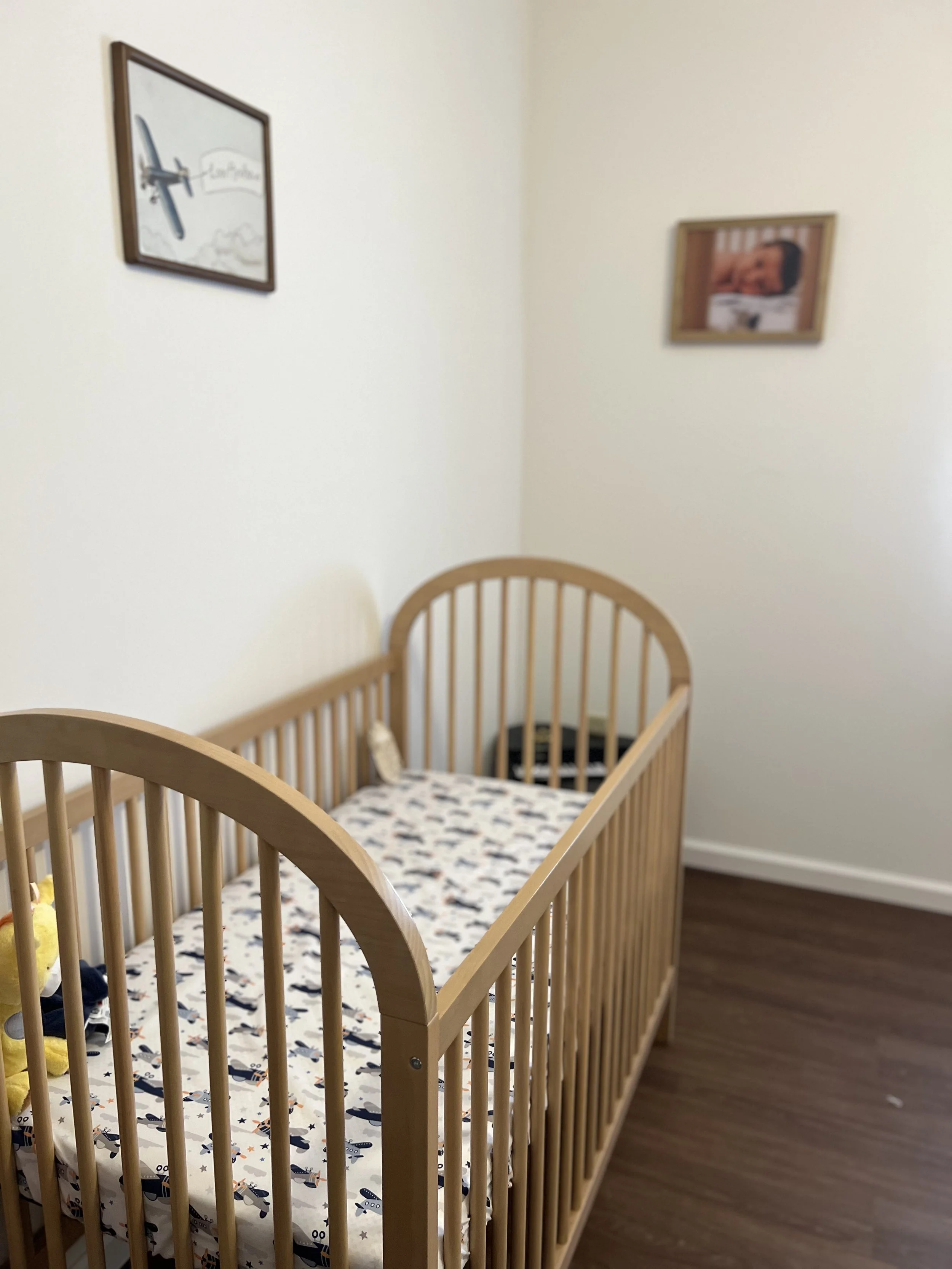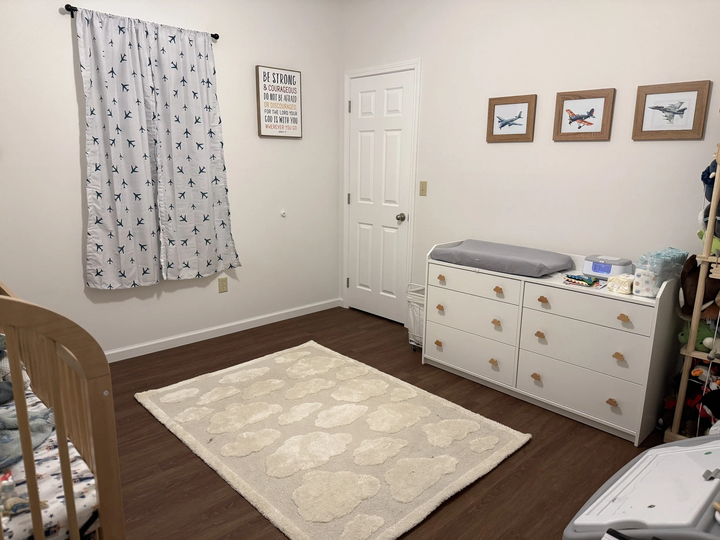 We had no intention of having a nursery because the boys were originally going to share a room. However, we decided in my last trimester to sell our old house and start looking for a bigger home for our growing family. Now, I am so thankful each boy has their own space! If they want to share a few years down the road we would be fine with that, but for now, given their almost four year age gap, this makes more sense. I wanted a nursery that we could easily convert to a car or transportation room later, so we went with airplanes! Airplanes are also our preferred form of transportation when we visit Gigi and Pops so it was a no brainer!